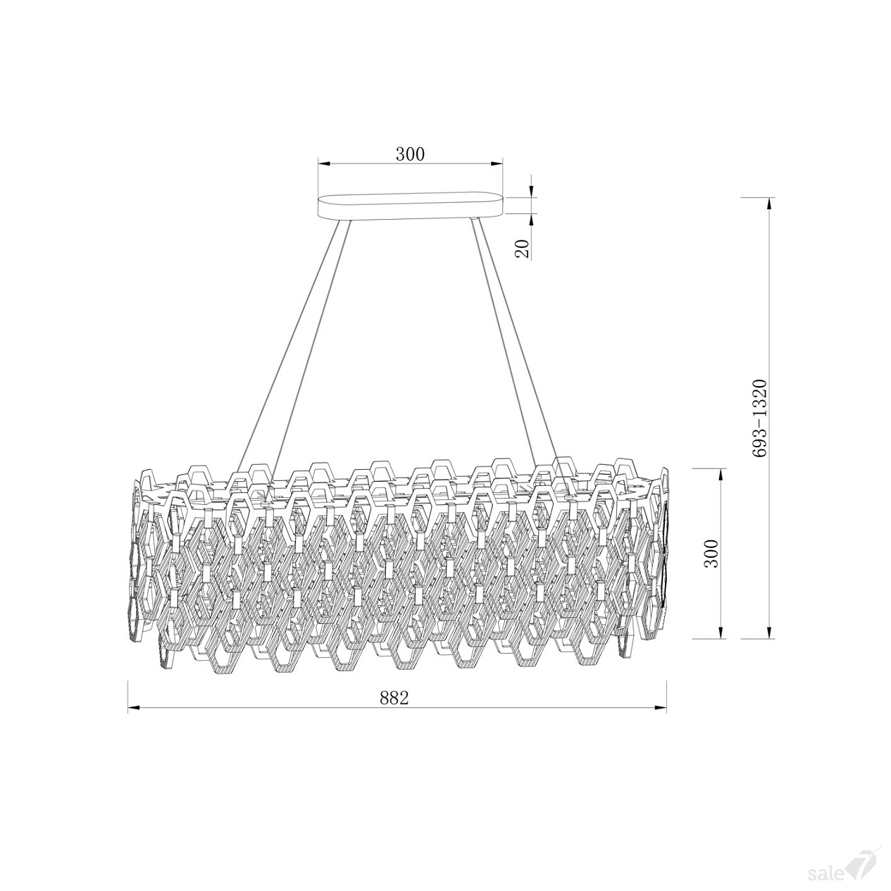 Высота с подвесом: 132 см