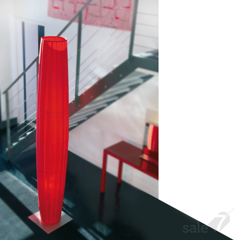 Ширина: 42 см, высота плафона: 240 см, отделка: красная гофрированная ткань, отделка арматуры: черный металл, серый металл, полированная нержавеющая сталь (влияет на цену), флуорисцентные лампы, 5 штук, мощностью 23 Вт, цоколь E27 или лампы накаливания 5 штук, мощностью мощностью 75 Вт, цоколь E27, степень защиты: IP20